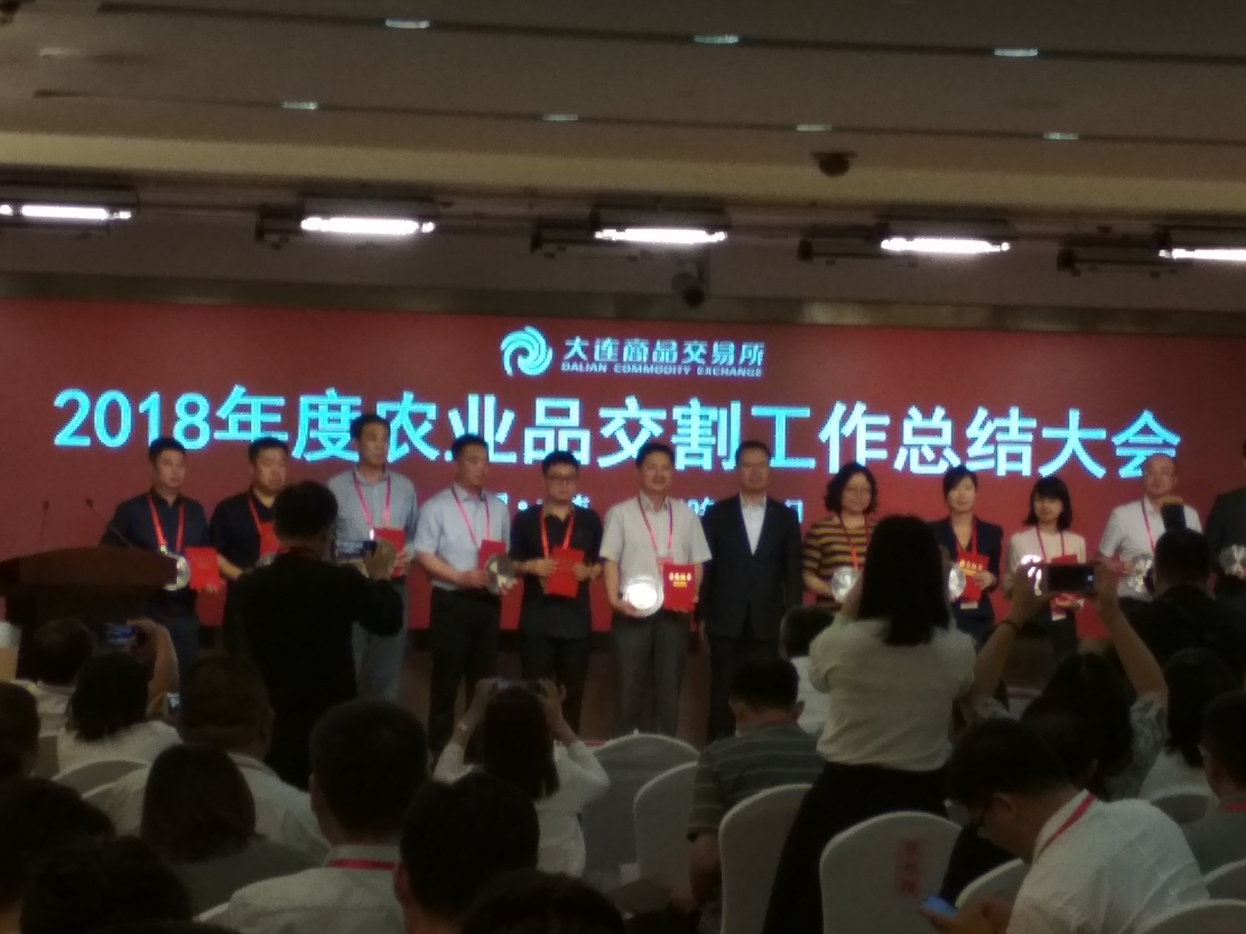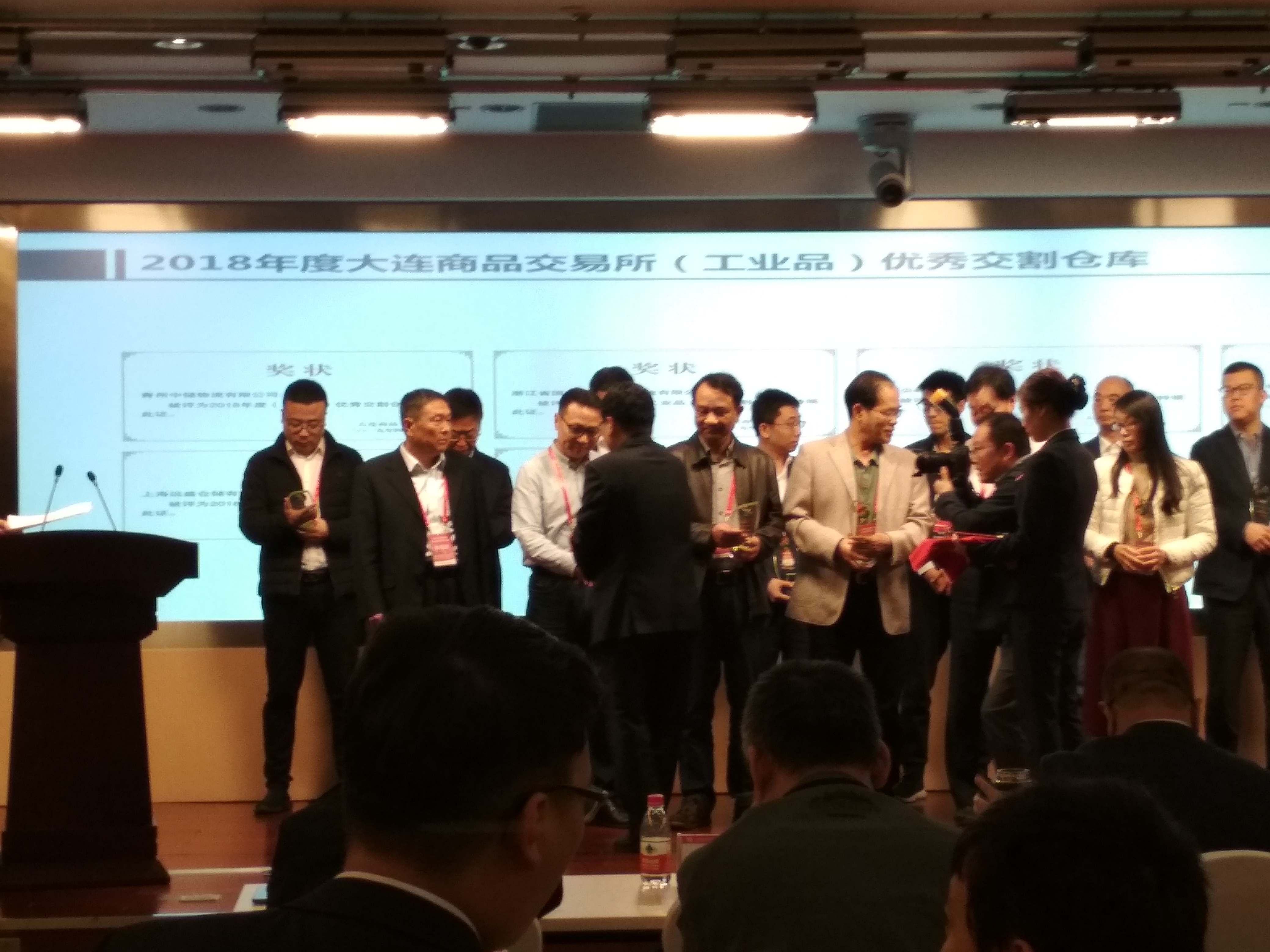 我公司領(lǐng)導(dǎo)和期貨專人赴大連參加了上述兩次會議。我公司以總分排名第二的成績被評為“2018年度(工業(yè)品)優(yōu)秀交割倉庫”,期貨負(fù)責(zé)人被評為”優(yōu)秀期貨負(fù)責(zé)人”,期貨專人被評為”優(yōu)秀期貨專人”。上述成績來之不易,除了公司倉儲部同仁的多年努力之外,也要感謝大商所領(lǐng)導(dǎo)的監(jiān)督和指導(dǎo),感謝廣大客戶的支持和配合!