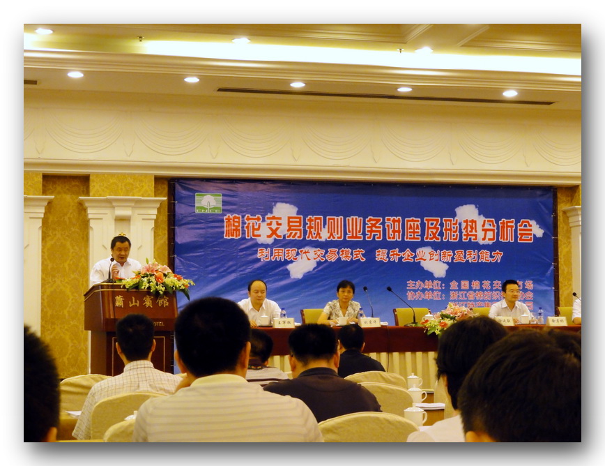2010年9月6日“全國(guó)棉花交易市場(chǎng)”在浙江蕭山開元賓館召開了“棉花交易規(guī)則業(yè)務(wù)講座及形勢(shì)分析會(huì)”我司派專人全程參加了會(huì)議。