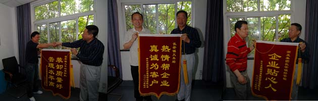 為了答謝鐵路長安鎮(zhèn)站相關(guān)部門對我司的PVC到達(dá)業(yè)務(wù)的大力支持,2010年5月5日我司金方云副總經(jīng)理及錢江物流中心朱忠軍主任等一行向鐵路長安鎮(zhèn)站贈(zèng)送錦旗。