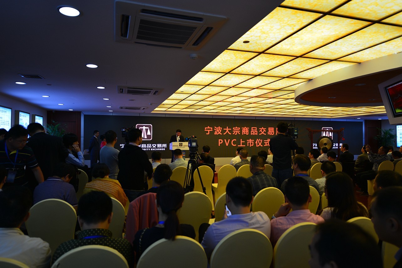 10月16日9時30,隨著寧波市委常委、常務副市長壽永年的手起棰落,敲響了寧波大宗商品交易所PVC(聚氯乙烯)上市的鑼聲,甬商所電子屏幕上很快顯示出第一手PVC合同成功交易。中國氯堿工業(yè)協(xié)會理事長李軍、寧波市副秘書長李亞珍、寧波市國資委主任徐柯靈、甬商所董事長時利眾、民生銀行寧波分行行長孫紅英等領導以及全國PVC行業(yè)140多家企業(yè)代表參加上市儀式。